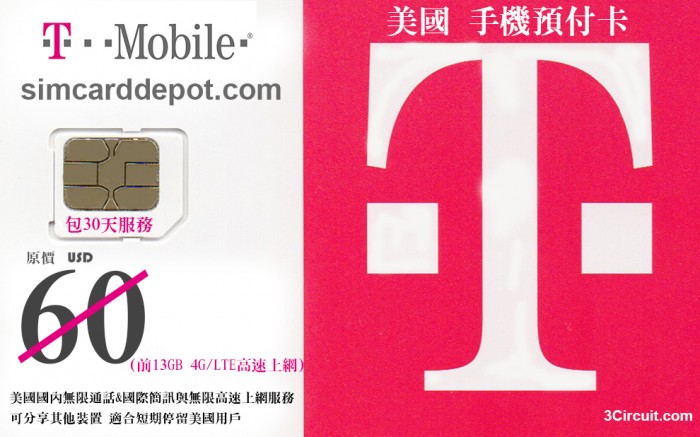 T-Mobile美國預付卡 無限通話簡訊&上網服務(前 6GB 4G/LTE高速上網)包30天
