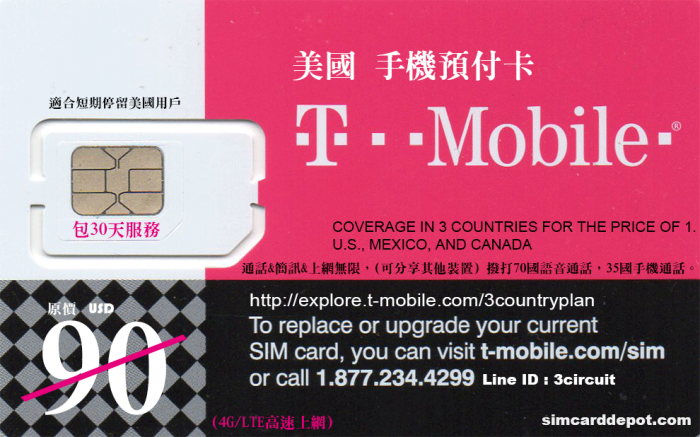 T-Mobile美國預付卡 無限通話簡訊&上網服務(前 10GB 4G/LTE高速上網)包30天(含北美)