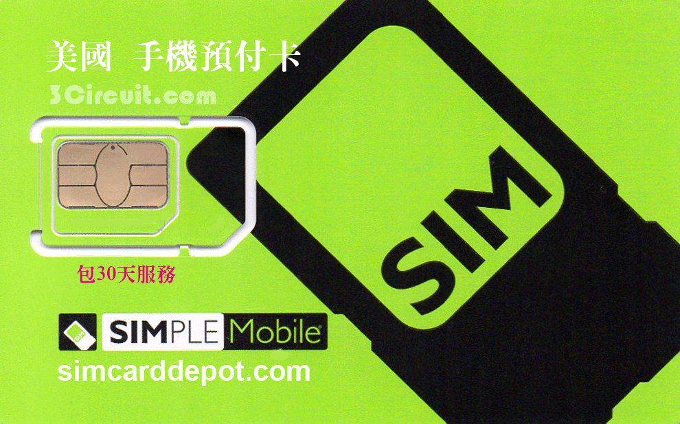 - SIMPLE Mobile美國預付卡 包一個月30天預付套餐